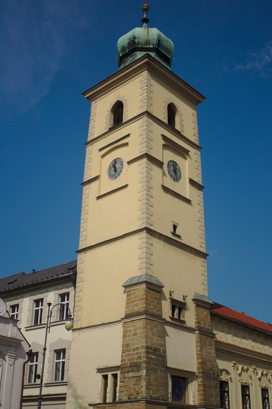 My jsme se Litomyšl navštívili autem nikoli autobusem takže jsme se na nádraží ani nedostali. Zaparkovat se dá skoro přímo až pod zámkem. Volným krokem asi tak za pět minut se dá poměrně intuitivně i bez mapy dojít na centrální hodně dlouhé náměstí, kde najdete sochu Bedřicha smetany a místní orientační bod a to věž uprostřed náměstí. Náměstí působí příjemným dojmem. Dojem kazí pouze velké množství aut.