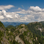 Na vrcholu je skvělý výhled. Respektive na prvním vrcholu. Už z města cestou můžete vidět, že Mt. Seymour má vrcholy vlastně tři. A po trailu se dostanete k prvnímu zprava. Na další dva vrcholy má cenu jít pokud chcete vidět o trošku lépe na hory za vámi – North Shore. Ale zase přijdete o pohledy na město a tak vůbec celé okolí směrem na jih.