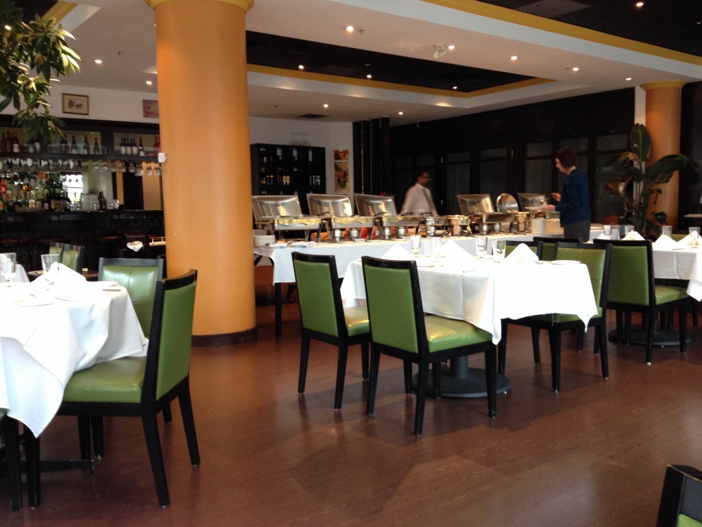 Před vstupem do restaurace jsme ještě venku viděli ceduli – All you can eat lunch buffet – 15, 95 CAD. Takže jsme se rozhodli tedy za 15,95 CAD se nacpat vším, co nabízejí. Mimochodem, je to asi ta nejrozumnější varianta, ostatní jídla v menu začínají na 14 dolarech.